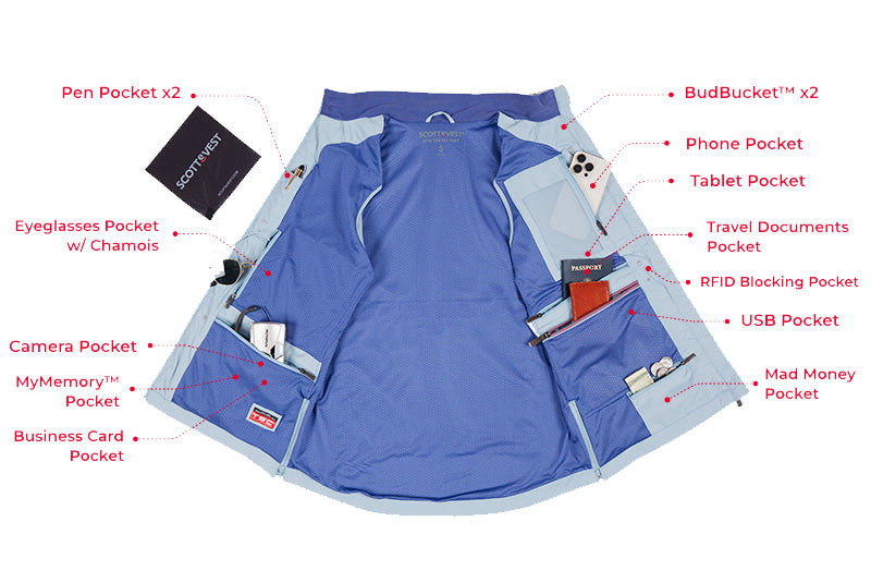 No Carry On FeesAvoid hidden airline fees by bringing everything for your flight in your vest.