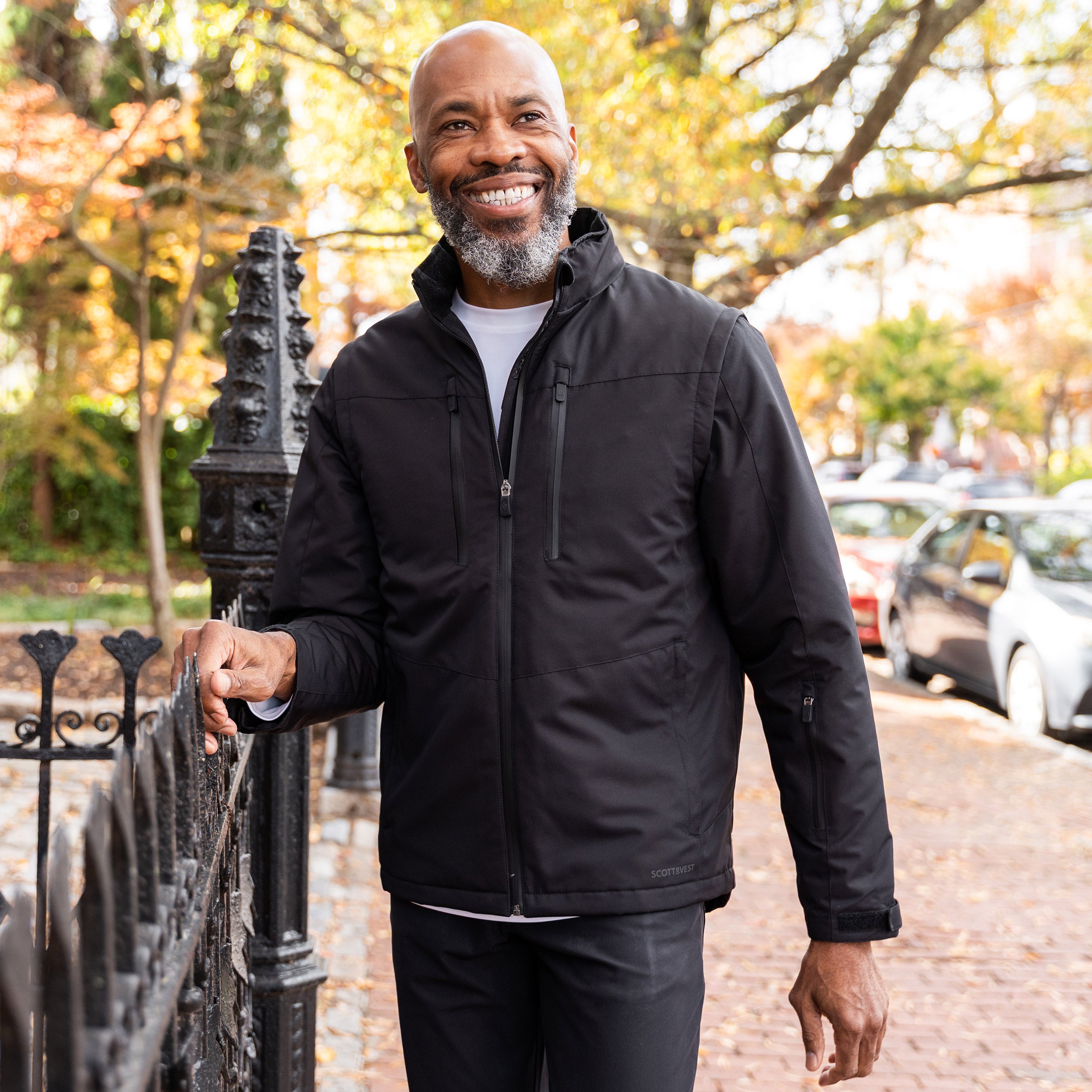The high tech cure for colder weather, the Evorev Jacket is the culmination of a quarter-century of pocket science and innovative design. With 34 pockets for all your gadgets and essentials, including an RFID blocking pocket and a built for travel organization system, you'll be prepared for anything and everything. The water-resistant, quilted jacket is both warm and versatile. The adjustable and detachable hood can be rolled into the collar for storage or zipped off and stored in one of the pockets. The sleeves are removable, so you can wear it as a jacket or a vest. This hyper-functional jacket is the kick-off to our 25th Anniversary celebration. Learn more about it's Evolution - Revolution here.
