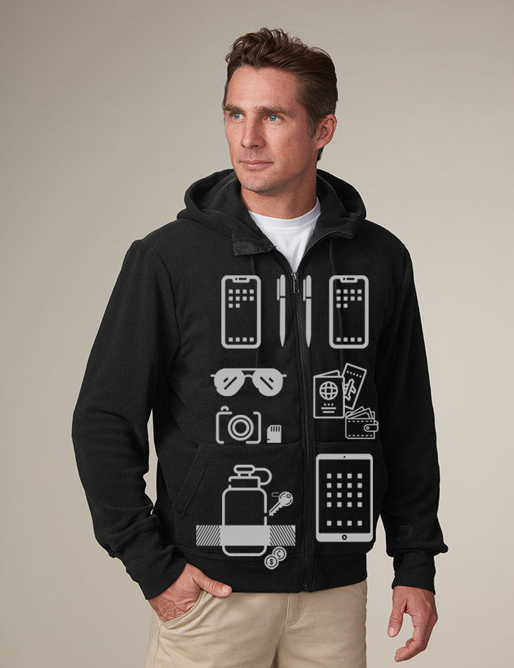 The soft and comfortable the SCOTTeVEST Microfleece Hoodie with hidden pockets is the clothing equivalent of a luxury automobile. It looks great, is beyond comfortable and has a ton going on under the hood. Organize your gadgets and essentials in the 21 thoughtfully engineered pockets and enjoy the ride!