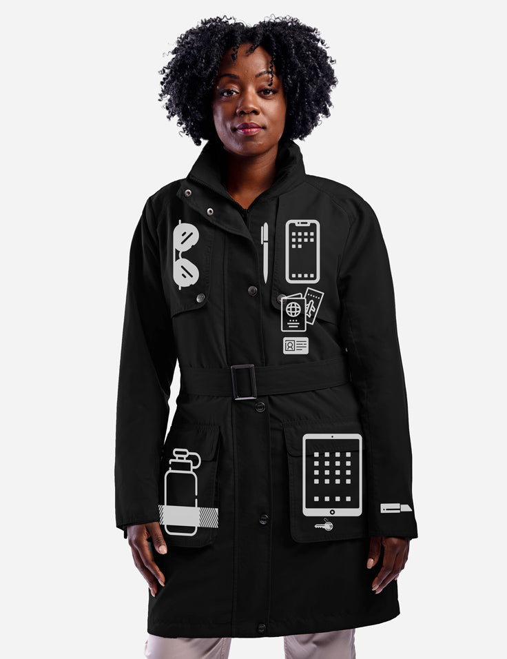 Help me Rhonda! This stylish jacket will take care of you on chilly days. Cut to flatter your curves and belted to cinch your waist, the Rhonda is as stylish as it is functional. This hardworking stunner has 20 pockets, keeping you hands-free and prepared for anything!